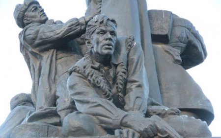 На гранитном постаменте фигура Куриленко с гранатой в руках и плащ−палаткой на плечах. Скульптор − К. Пастернак. Архитектор − С. В. Шестопал.